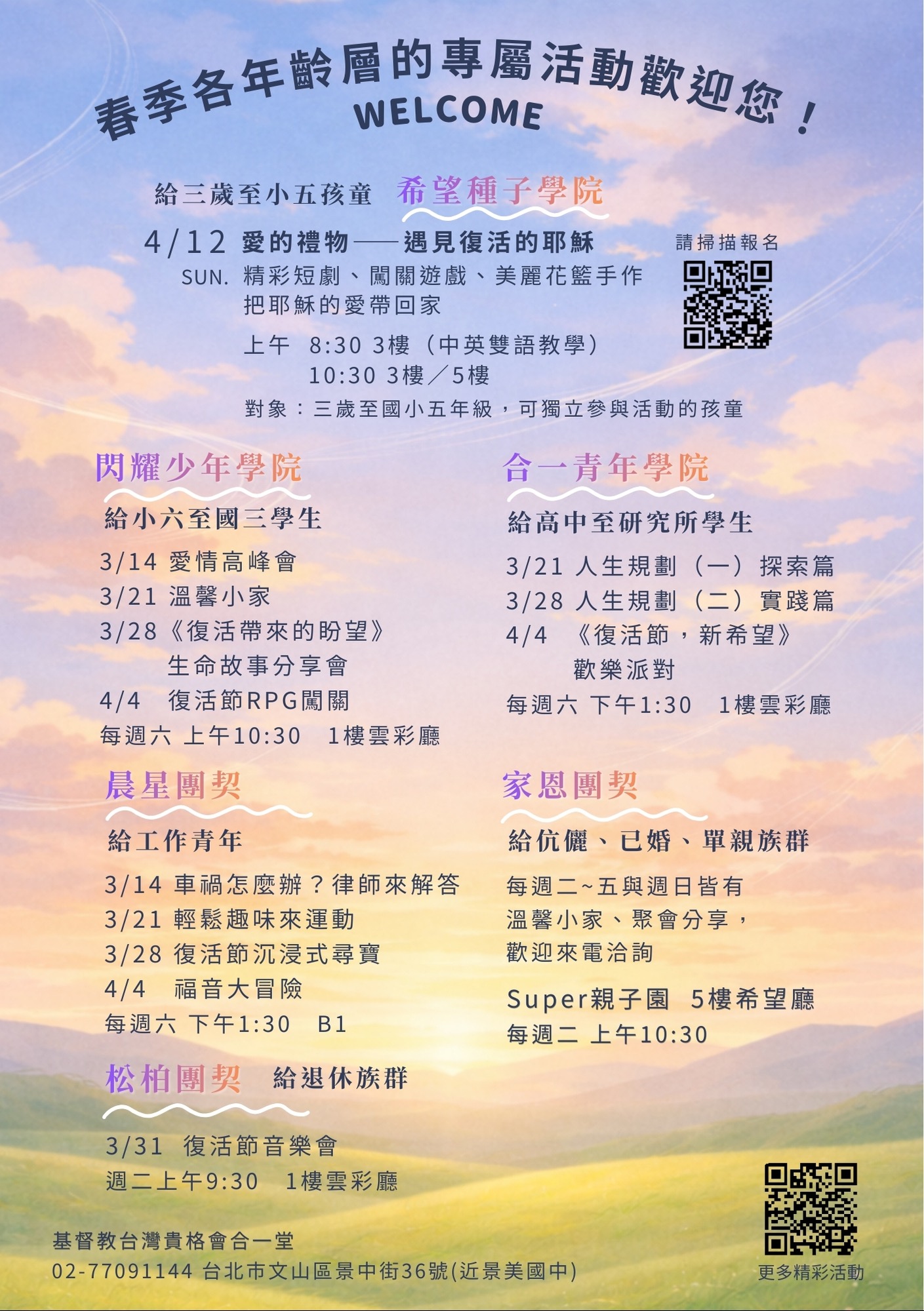 歡迎參加合一堂春季各年齡層活動~